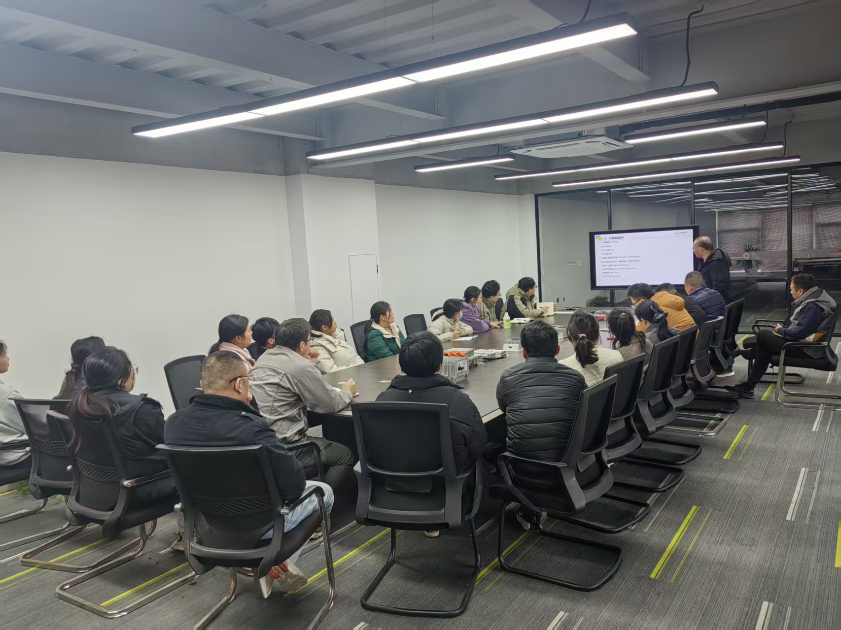 Для дальнейшей стандартизации контроля производственного процесса и улучшения понимания и подготовки команды Плана управления (CP) компания организовала специальный тренинг по знанию CP и руководству по подготовке в конференц-зале 1 офисного здания с 16:30 до 17:30. В тренинге под руководством старшего эксперта по качеству активно участвовали основные специалисты различных отделов и соответствующий персонал, которые вместе изучали код качества для эффективной работы.